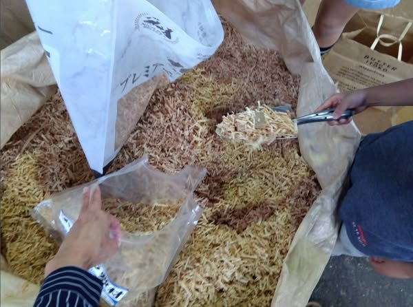 早速自分達がもらったおがくずを、モルモットのめぐるにあげてふれあいを楽しんでいました